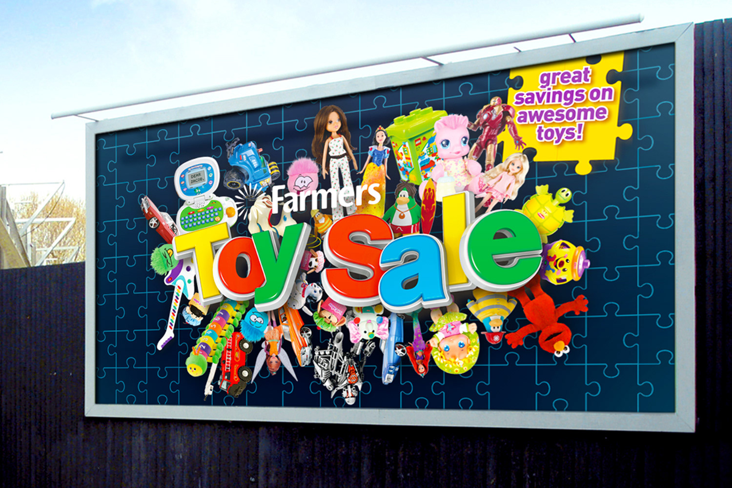 Our team worked on a huge variety of POS for Farmers, from POS and mailers to TV and radio adverts. But the 2 standout pieces were the 'brand refreshes' of their two biggest sales events, the 'Red Dot Sale' and the 'Toy Sale'. The client wasn't over the moon with the current look and feel of either event, and as a result, they were changing the look regularly. However, the current look Farmers are using is what we created for them approximately 15 years ago. We made the Red Dot look and feel in 2010 and the Toy Sale in 2011 and both looks are still going strong today.